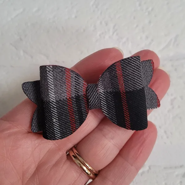 This 2.5" handmade, tartan bow is the perfect size for the younger child - ideal for nursery & reception children. The last two pictures show the 2.5" bow compared to the larger 2" and 3.5" designs.The tartan is felt backed and sealed to prevent fraying.It can be made as a hair clip or bobble. If made as a clip it will be attached to a 45mm alligator clip.Where possible I upcycle material to prevent it otherwise going to landfill.Please note, due to the nature of the fabric, each bow will be slightly different.SIZINGThe bow is 2.5" in width.PLEASE NOTEThis listing is for a single bow, if you wish to purchase more than one, please add the quantity to your basket.This product is NOT a toy.Each item is handmade so may vary slightly in appearance.INSPIRED BY MYLAPlease take a look around at other items in my store, you will find lots of other pretty items at http://www.inspiredbymyla.etsy.comSOCIAL MEDIADon't forget to look me up on Facebook and Instagram @InspiredByMyla - here you will find all the latest products and updates!SHIPPINGItems will come packaged and presented nicely. I take care with all my items to make buying from me an experience I hope you will repeat!