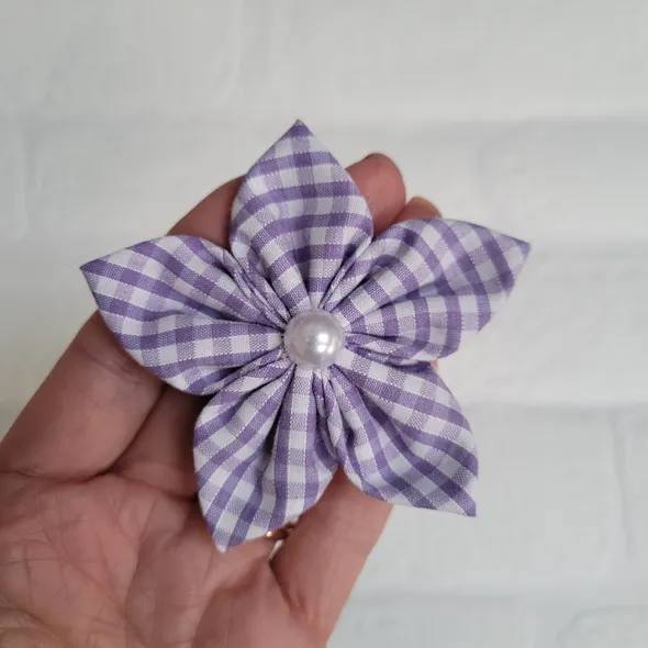 This handmade, lilac, purple gingham flower can be made as a hair bobble or hair clip. It has individually hand sewn petals, it is then embellished with a faux pearl.SIZINGThe flower is approximately 8cm (3 inches) in diameter.This can also be requested as a larger flower 13cm (5") which can be seen in other colours here: https://www.etsy.com/uk/listing/522831733Please message me to order the large flower version of this.CUSTOM REQUIREMENTSPlease contact me if you have any special requests, I will always do my best to meet your requirements.PLEASE NOTEThis product is NOT a toy.It contains small jewels or embellishments.Each item is handmade so may vary slightly in appearance.MY SHOPPlease take a look around at other items in my store, you will find lots of other pretty items at http://www.inspiredbymyla.etsy.comSHIPPINGItems will come packaged and presented nicely. I take care with all my items to make buying from me an experience I hope you will repeat!SOCIAL MEDIADon't forget to look me up on Facebook and Instagram @InspiredByMyla - here you will find all the latest products and updates!